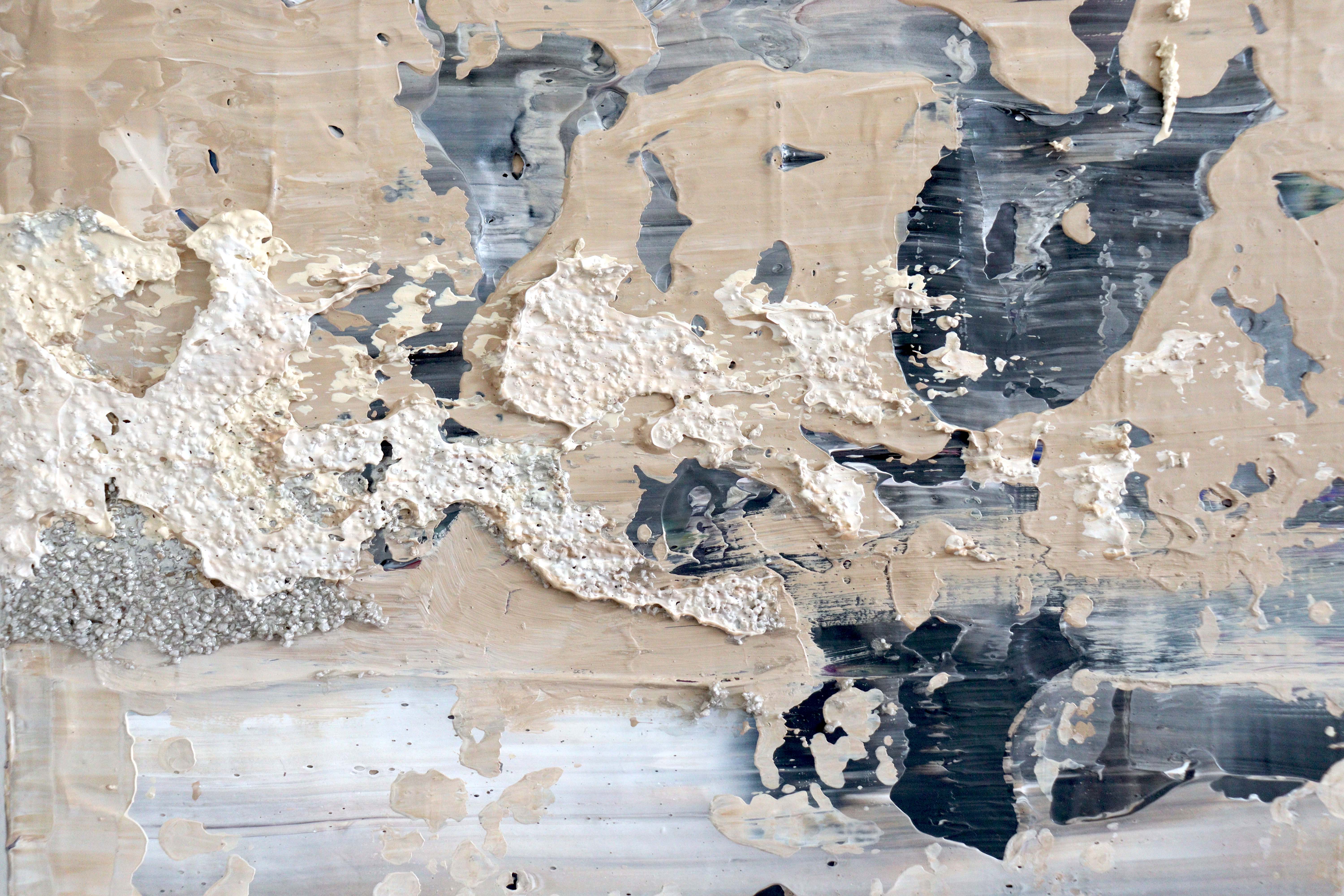 Acrylic on linen with mixed media and silver details